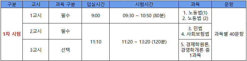 공인노무사 시험은 1년에 딱 한 번 시행되며, 1차, 2차, 3차 시험을 모두 합격해야 한다.