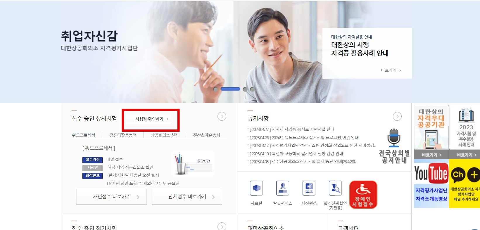 1. 대한상공회의소 자격평가 사업단 홈페이지에 접속한다.