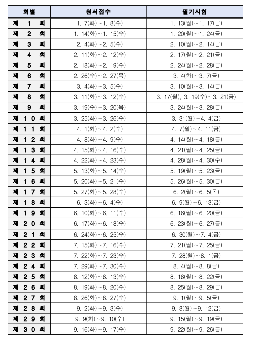 • 필기시험 면제일을 합격자 발표일로부터 2년간 면제된다.