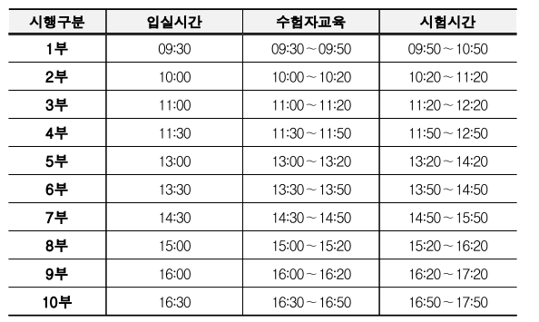 1️⃣ 일정 : 월요일 ~ 금요일까지 주중 시행을 원칙으로 하되, 시행 기간 내 공휴일은 시험이 운영되지 않을 수 있다.