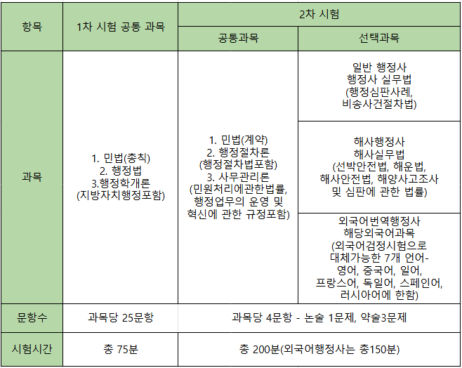 • 행정사 자격이 있는 사람으로, 다른 종류의 행정사 자격시험에 응시하는 사람은 1차 시험을 면제