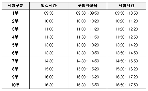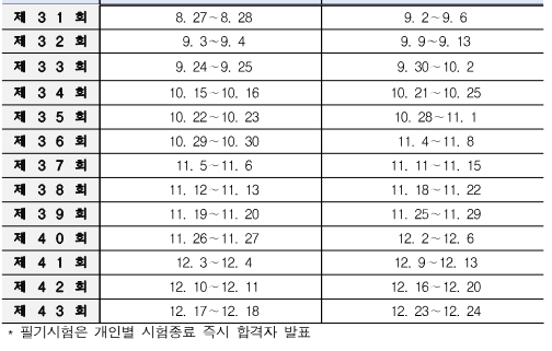 • 필기시험은 매주 월요일부터 금요일까지 주중 시행
