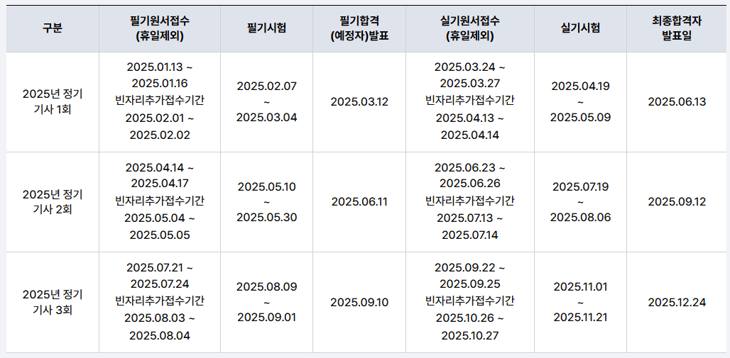 2025 정보처리기사 시험일정 | 실기 난이도 합격률 응시자격은? (0) | 2025.09.29 |