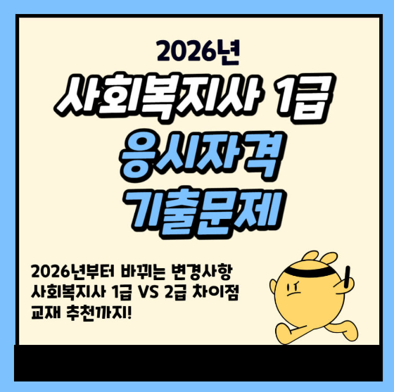 아래글에서는 2026년 사회복지사 1급 시험일정, 시험 과목, 그리고 최신 합격률까지 한눈에 볼 수 있도록 정리했습니다. 공부를 막 시작한 초보 수험생이라면 특히 꼭 확인해 보세요! 👇👇단순한 정보가 아니라, 합격을 앞당길 수 있는 출발점이 될 것입니다!