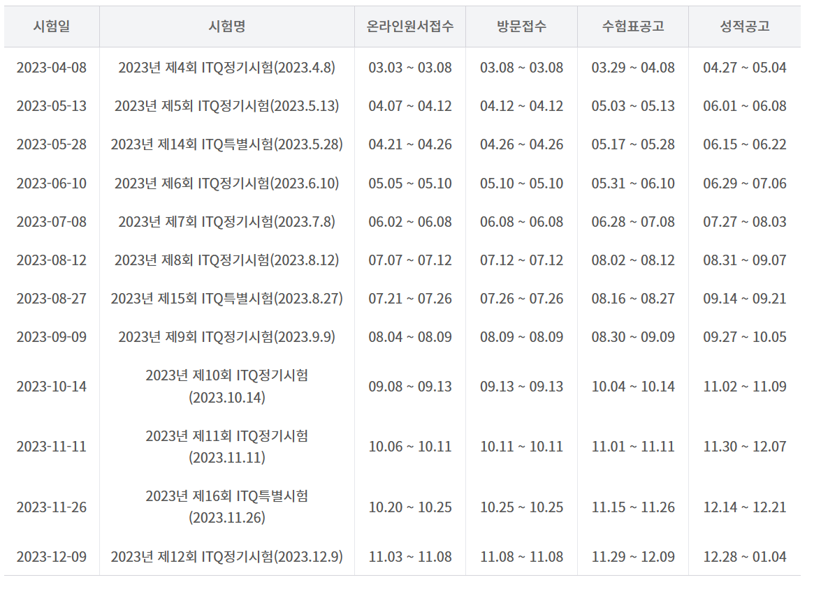 2. 2023년 ITQ 자격증 시험 일정